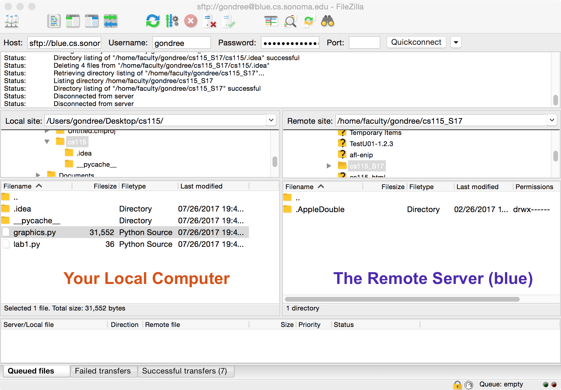 - You can copy files to blue using a program like FileZilla. See instructions below.
