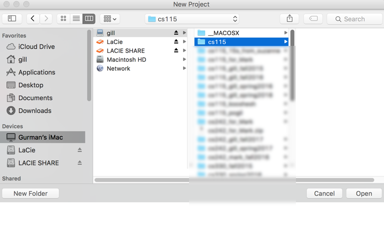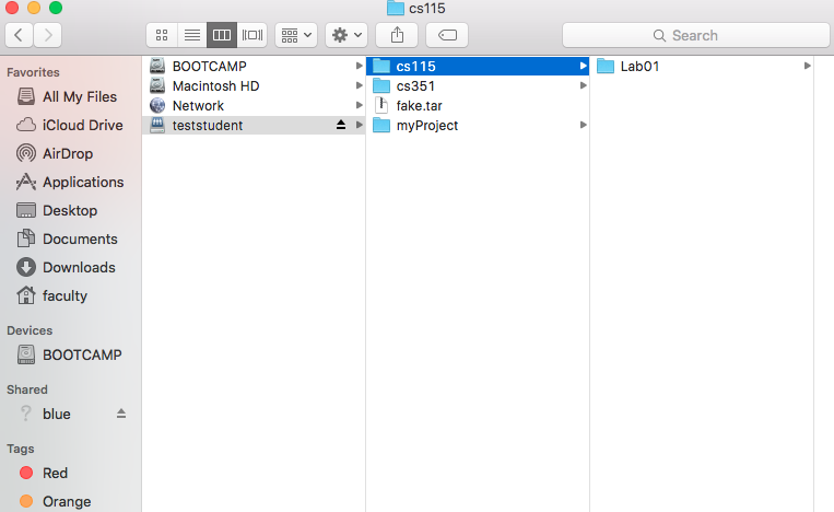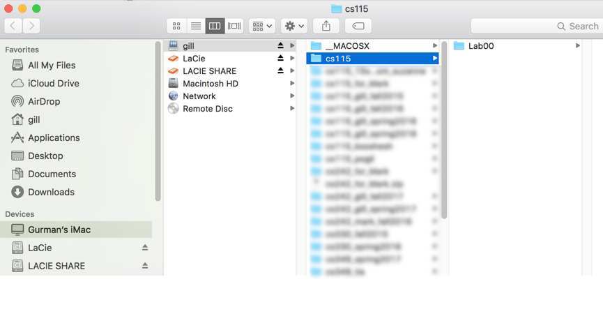 Notice that the folder Lab00 shows up in Finder under cs115 directory.